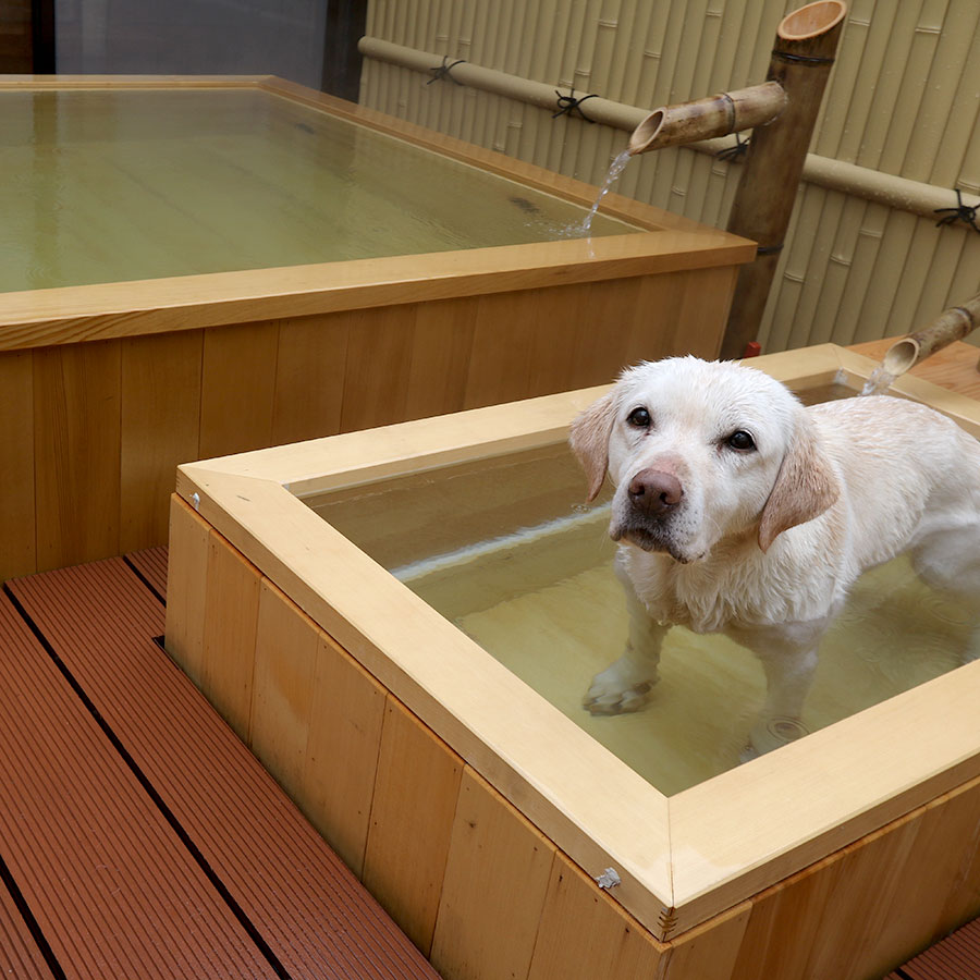 準特別室、特別室、貴賓室、迎賓室には愛犬専用の露天風呂を完備。